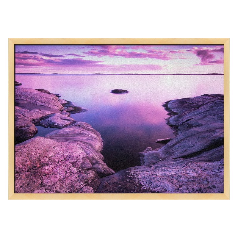 Kvalitní topný obraz s motivem fialové krajiny s oceánem, české výroby.