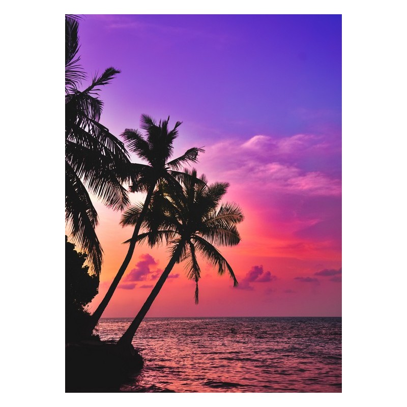 Kvalitní topný obraz s motivem palmového soumraku v Miami, české výroby.