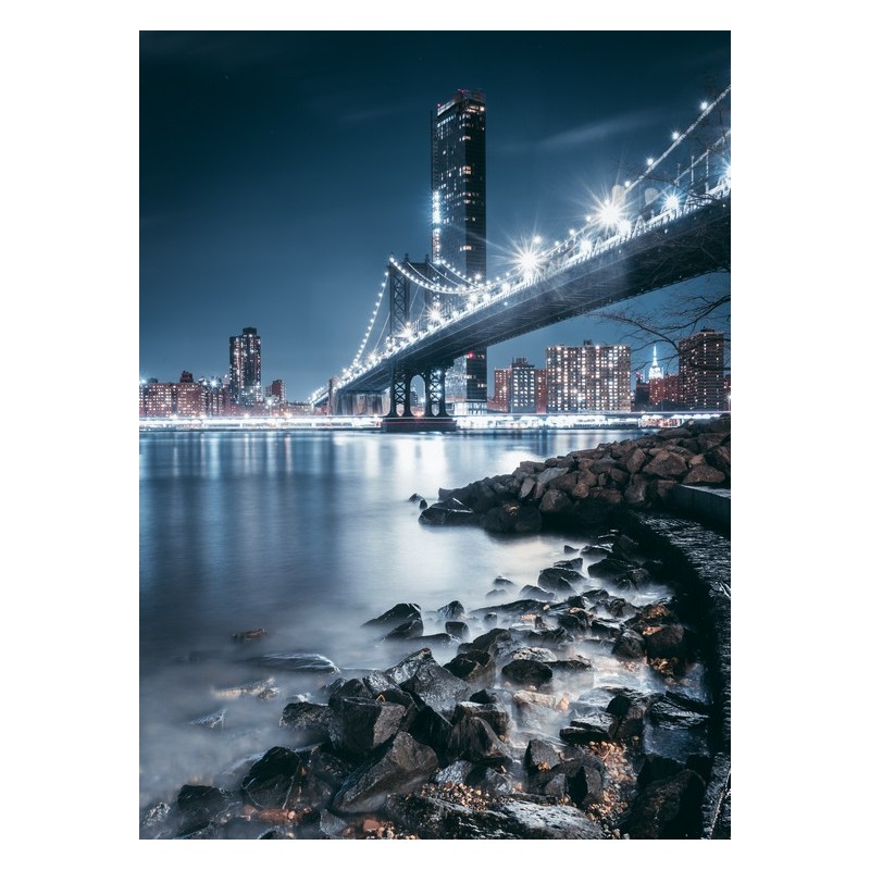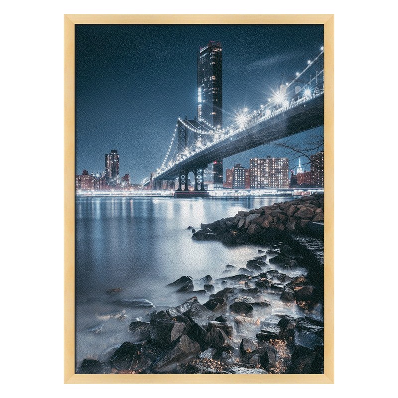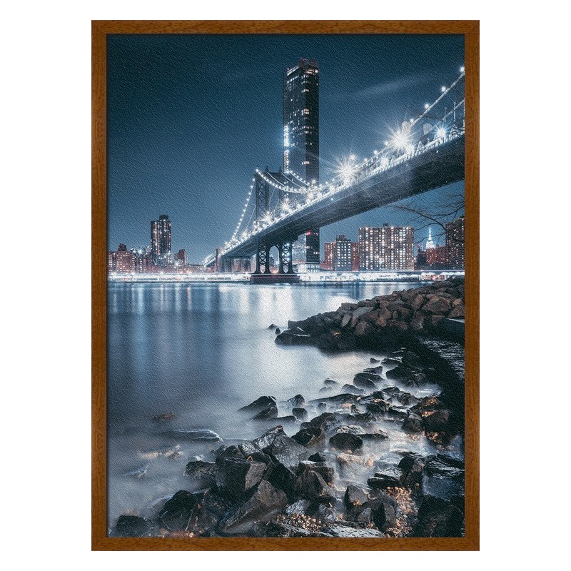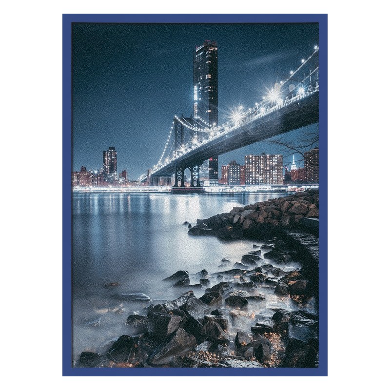 Kvalitní topný obraz s motivem nočního města a osvětleného mostu, české výroby.