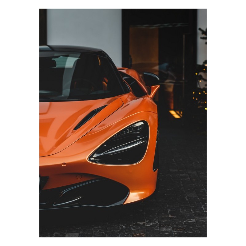 Infrapanel s motivem oranžového dravce v podání luxusního automobilu.