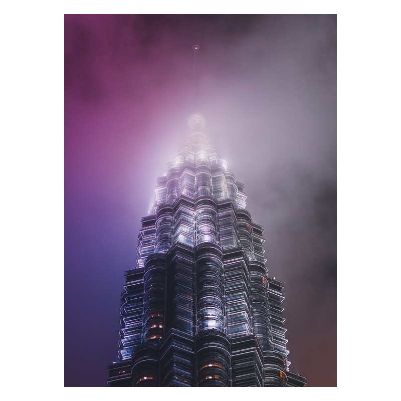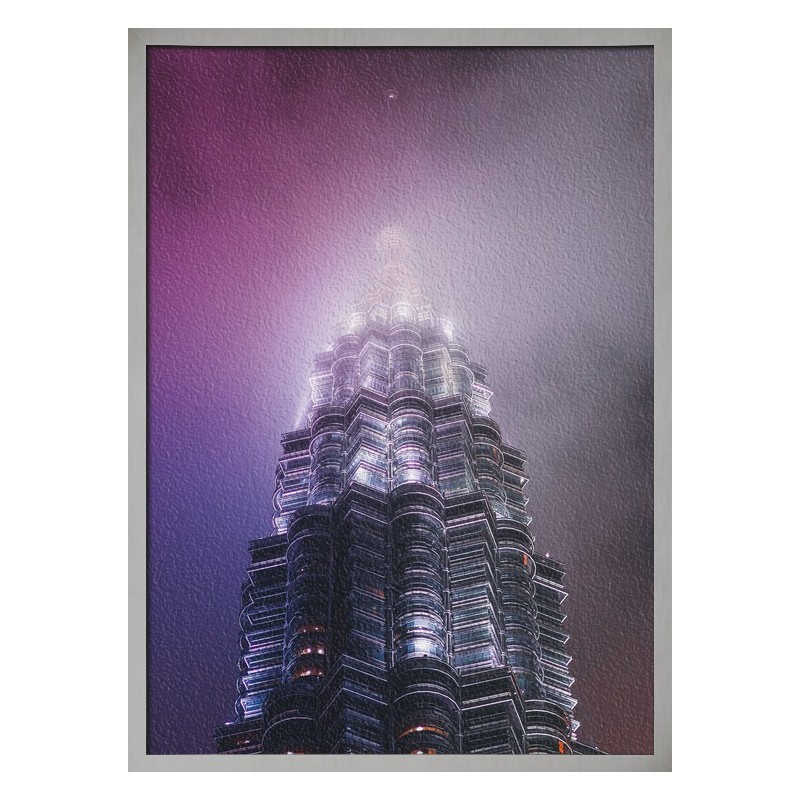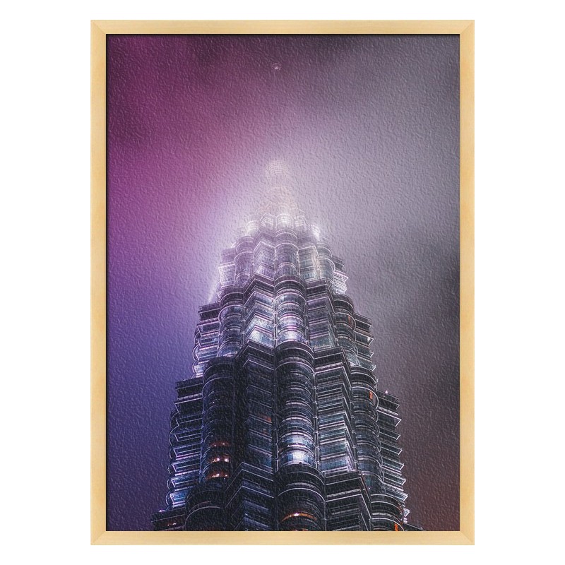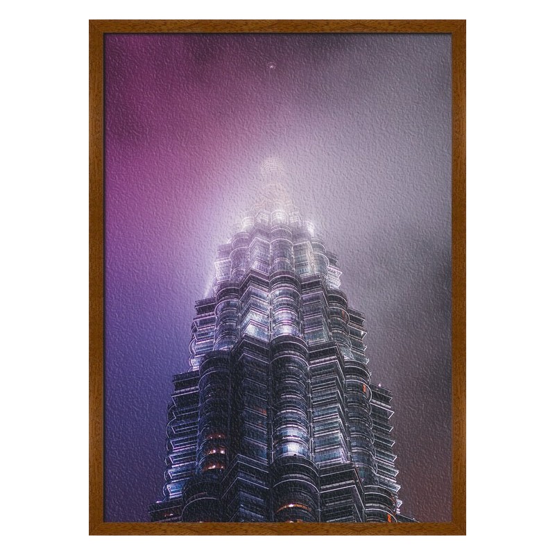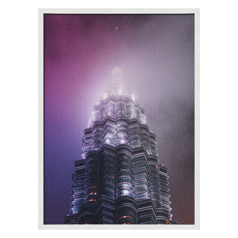 Kvalitní topný obraz s motivem mrakodrapu v mlze, české výroby.